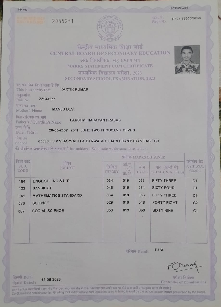 | Exam | Full Marks | Pass Marks | Marks Obtained |
