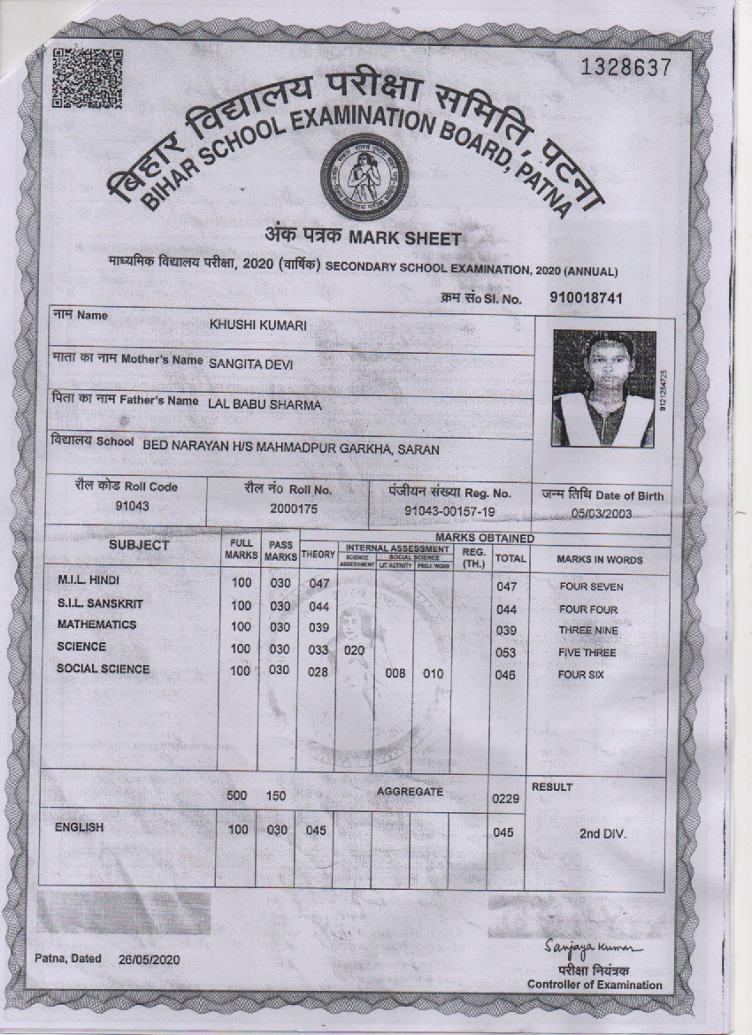 | Exam | Full Marks | Pass Marks | Marks Obtained |