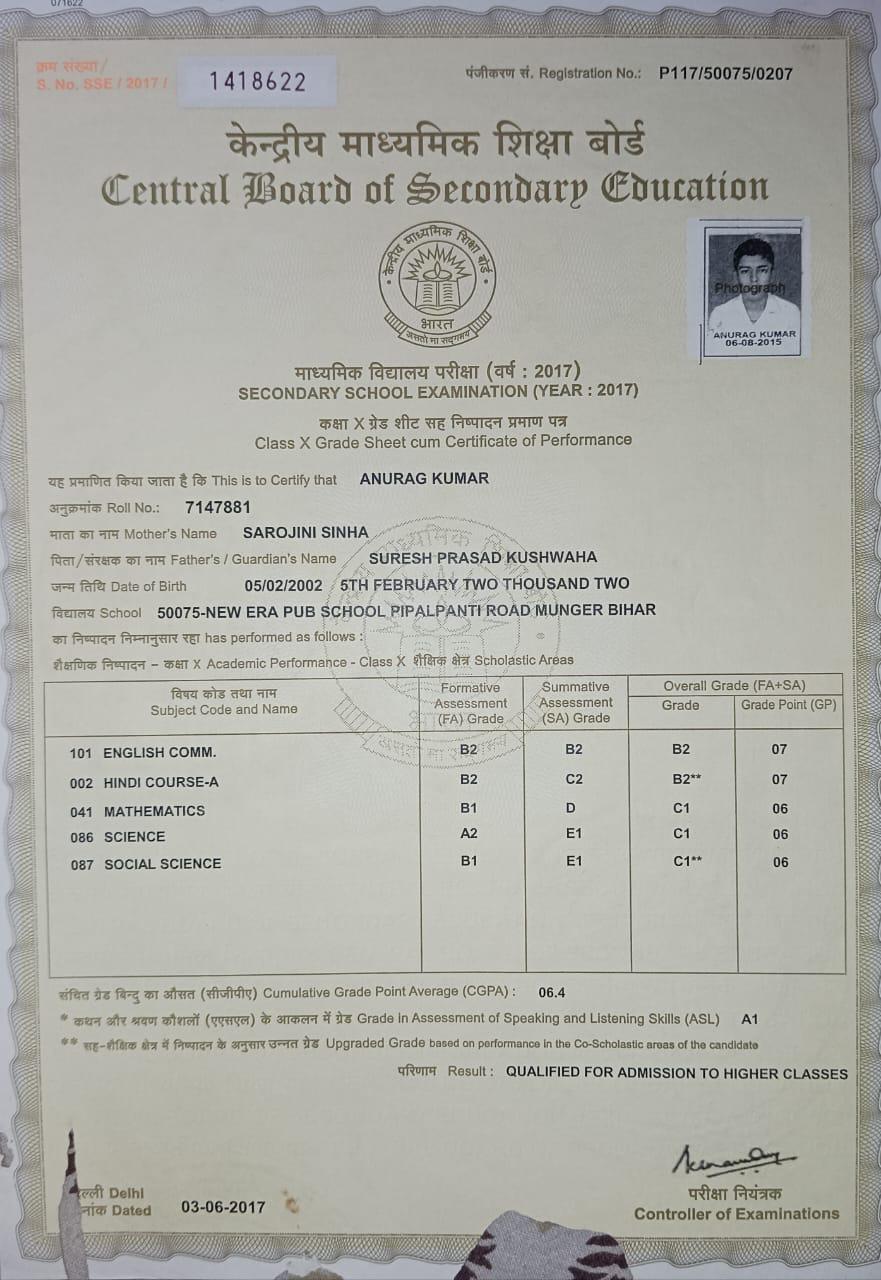 | Exam | Full Marks | Pass Marks | Marks Obtained |