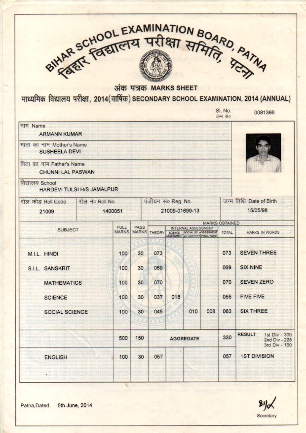 | Exam | Full Marks | Pass Marks | Marks Obtained |
