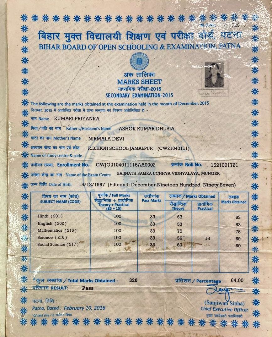 | Exam | Full Marks | Pass Marks | Marks Obtained |