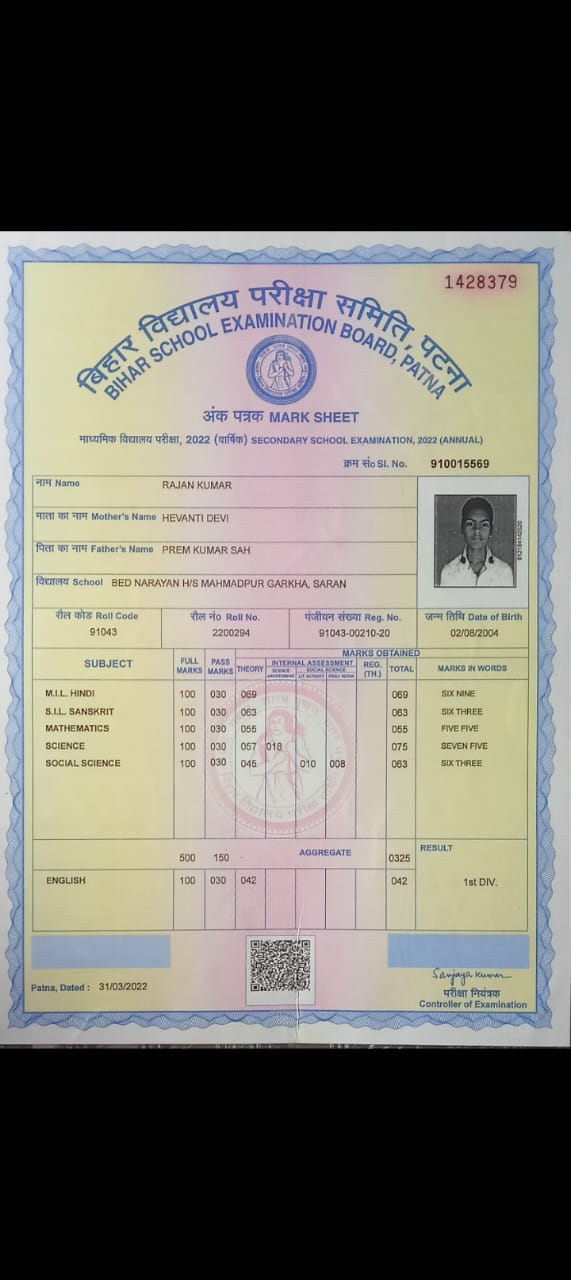 | Exam | Full Marks | Pass Marks | Marks Obtained |
