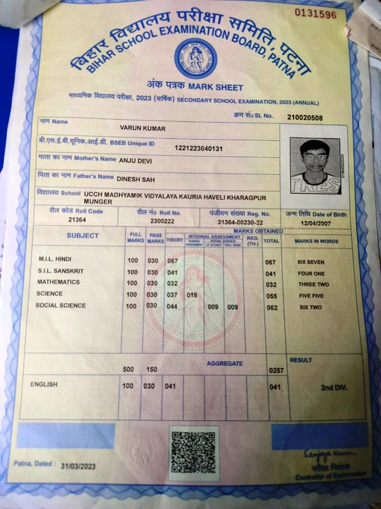 | Exam | Full Marks | Pass Marks | Marks Obtained |