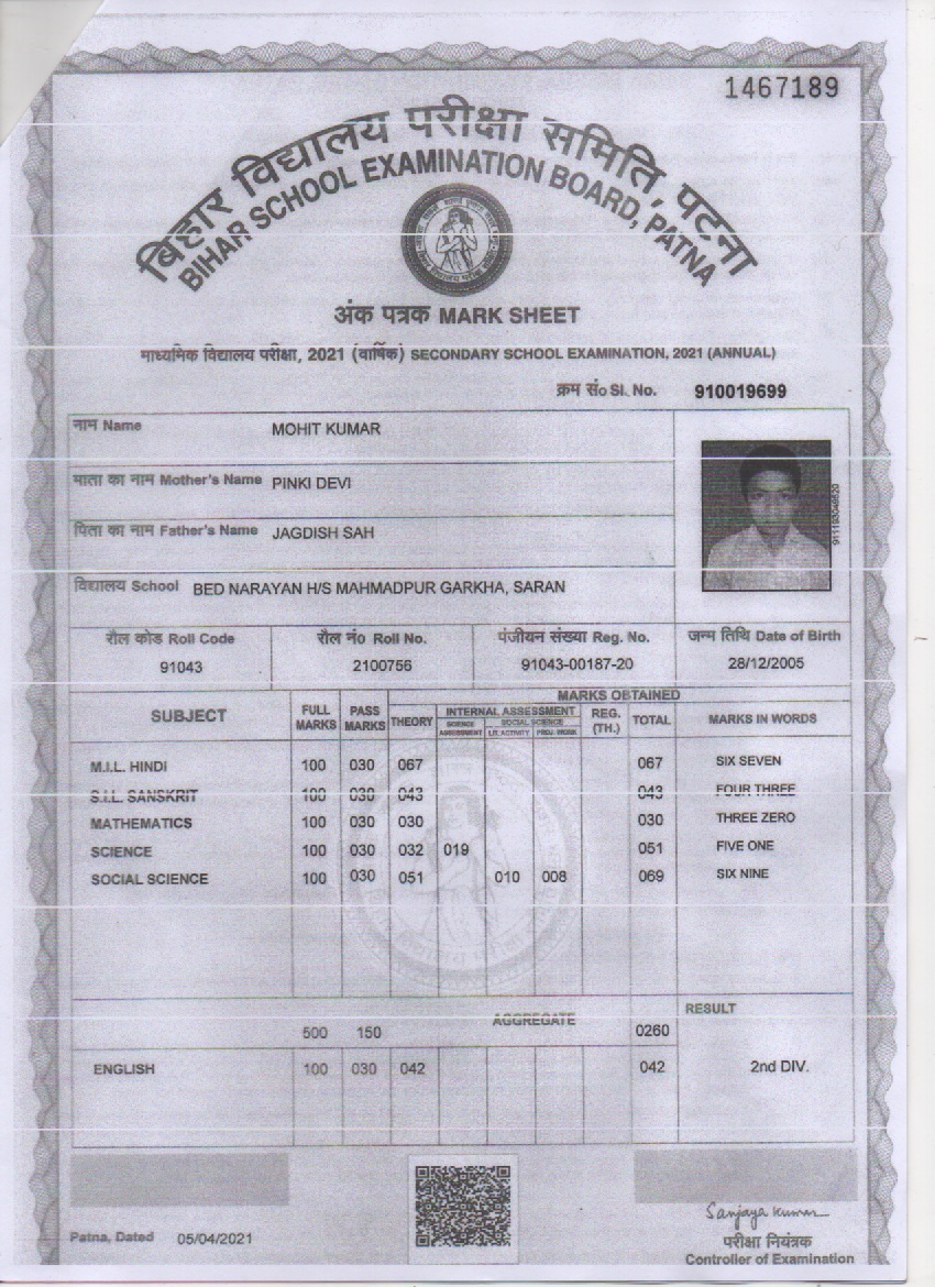 | Exam | Full Marks | Pass Marks | Marks Obtained |