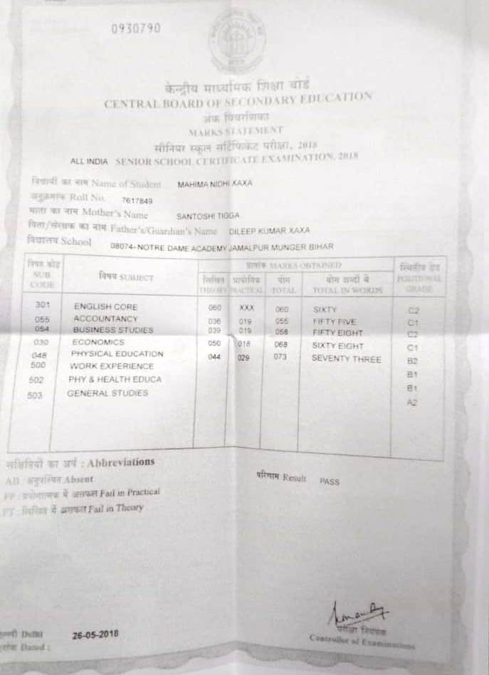 | Exam | Full Marks | Pass Marks | Marks Obtained |