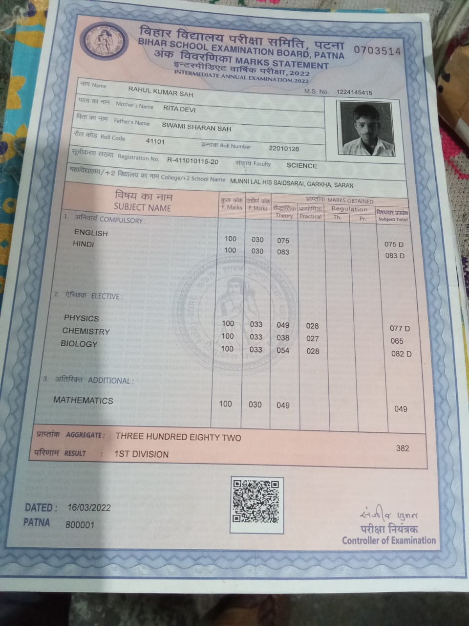 | Exam | Full Marks | Pass Marks | Marks Obtained |