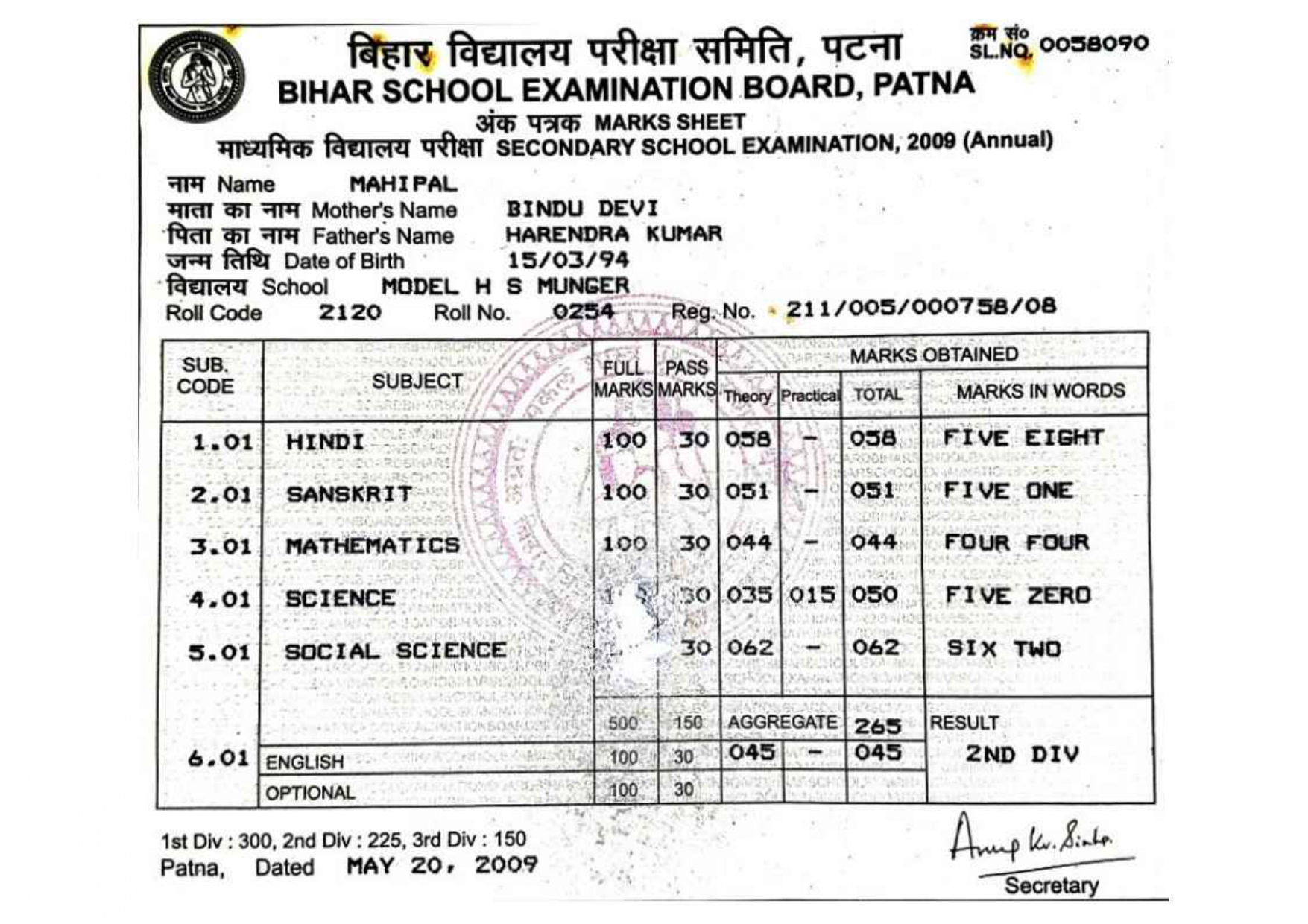 | Exam | Full Marks | Pass Marks | Marks Obtained |