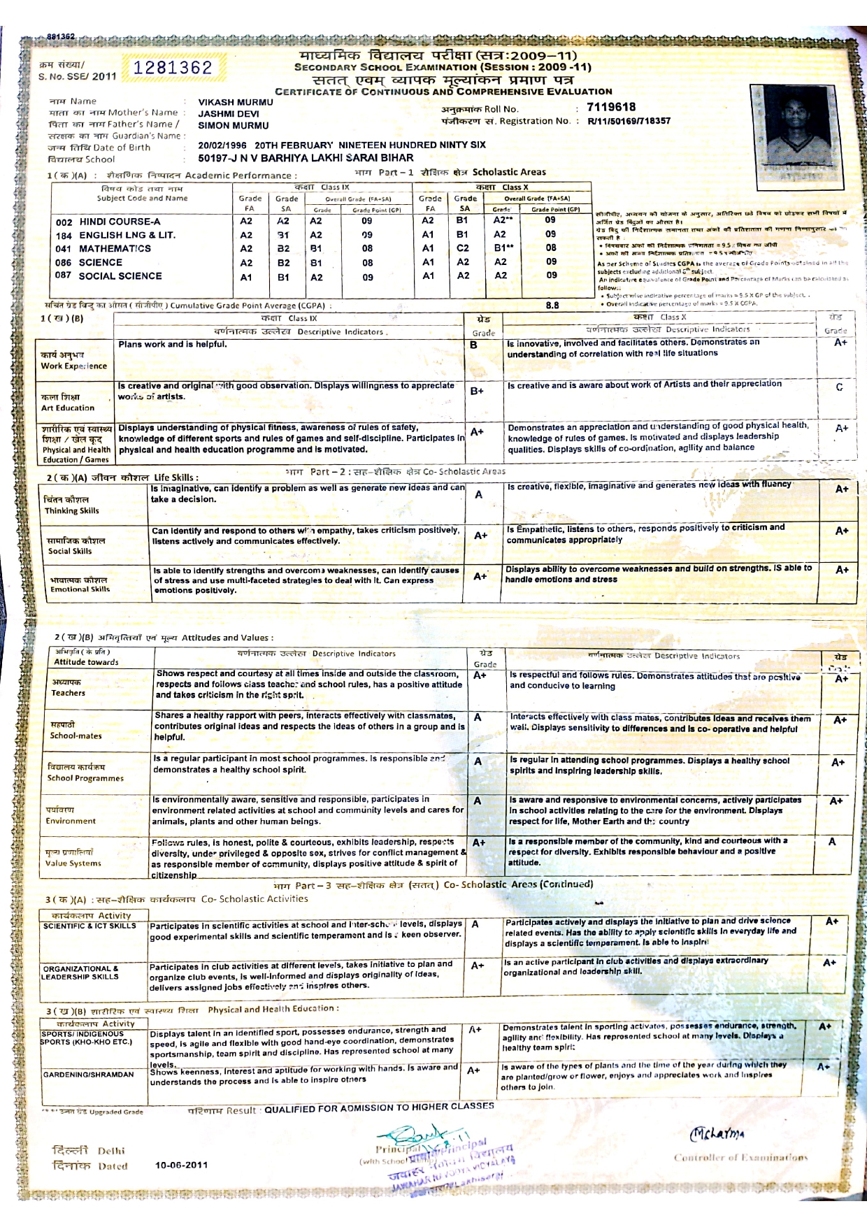| Exam | Full Marks | Pass Marks | Marks Obtained |