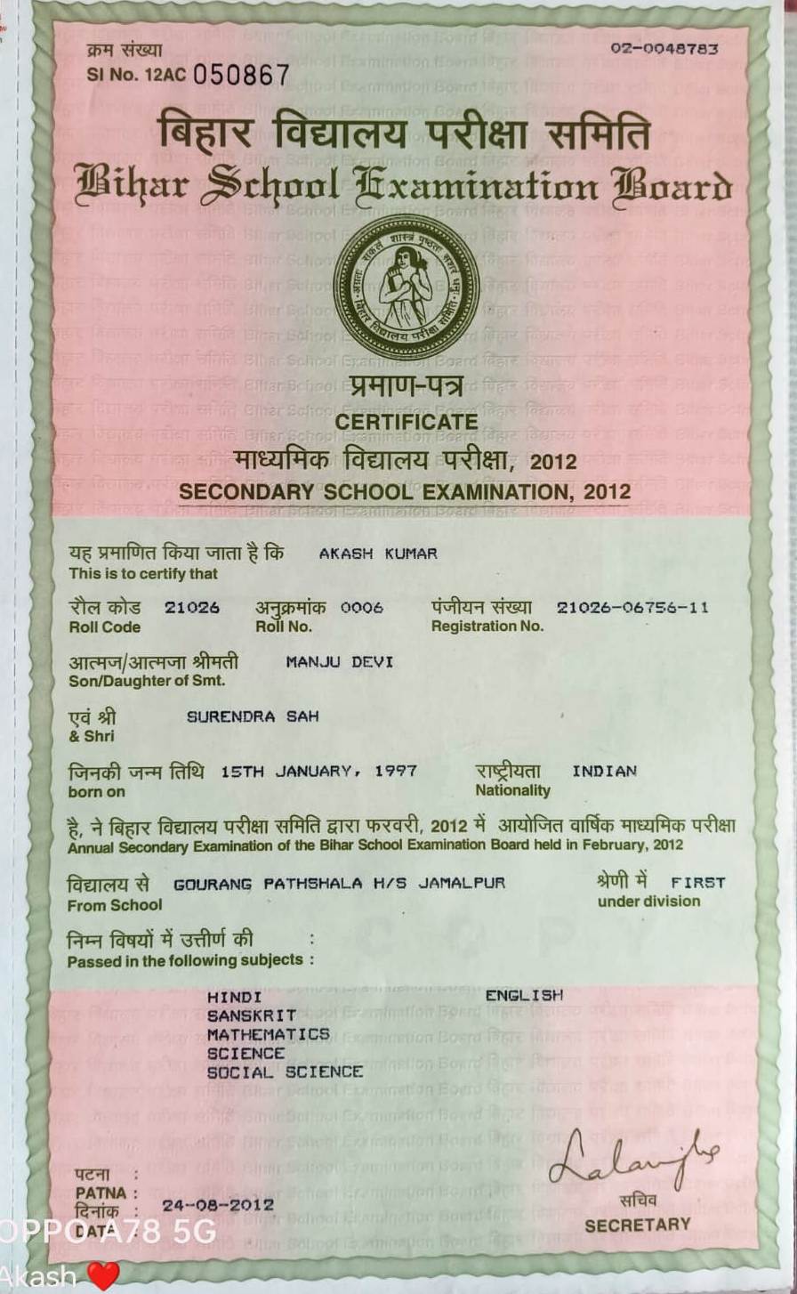 | Exam | Full Marks | Pass Marks | Marks Obtained |