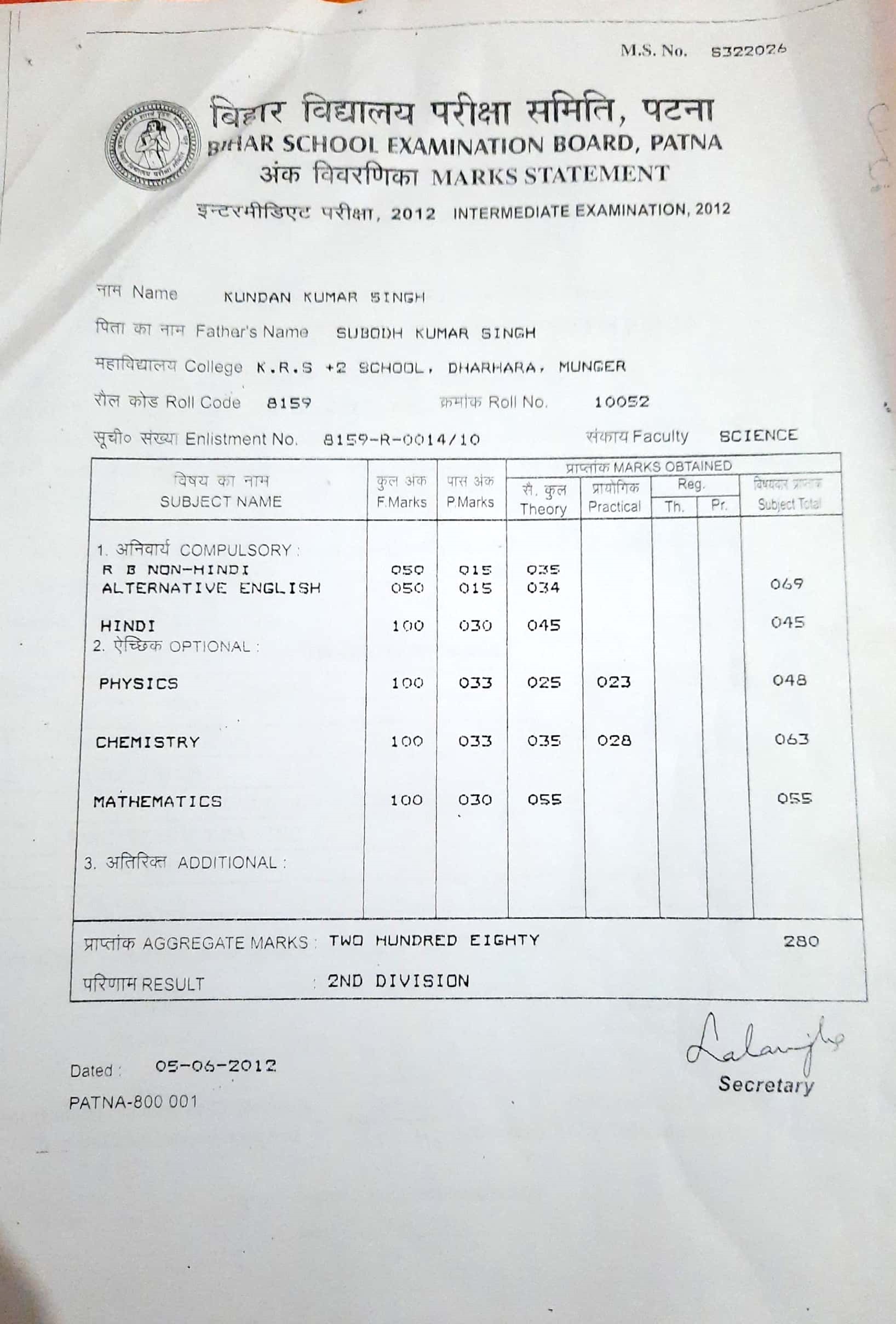| Exam | Full Marks | Pass Marks | Marks Obtained |
