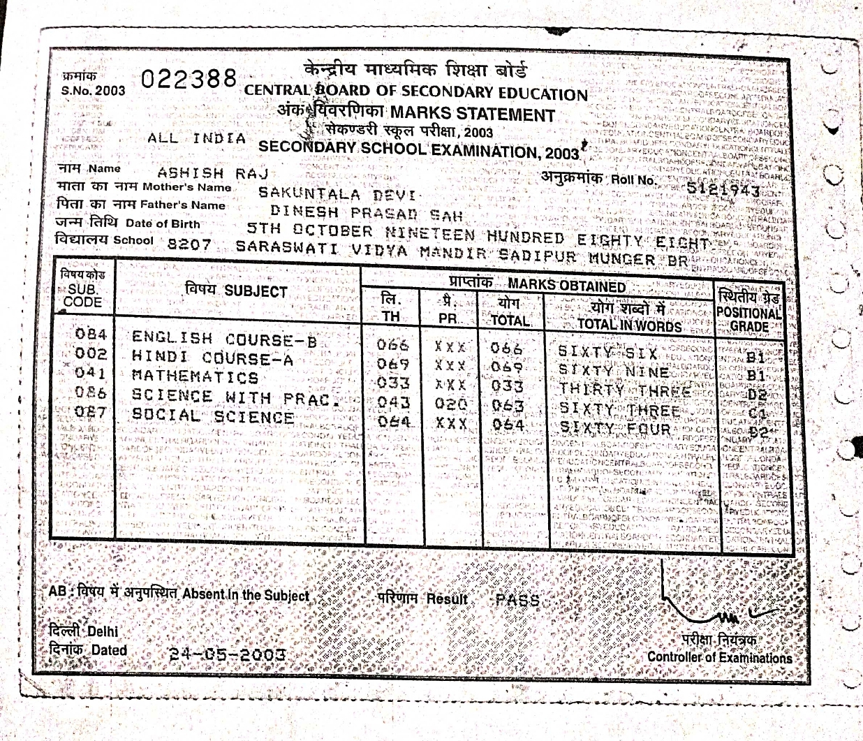 | Exam | Full Marks | Pass Marks | Marks Obtained |
