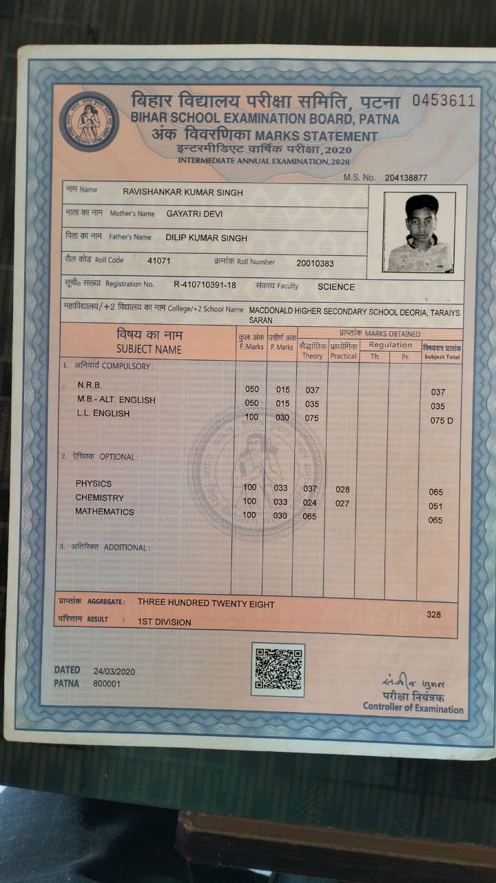 | Exam | Full Marks | Pass Marks | Marks Obtained |