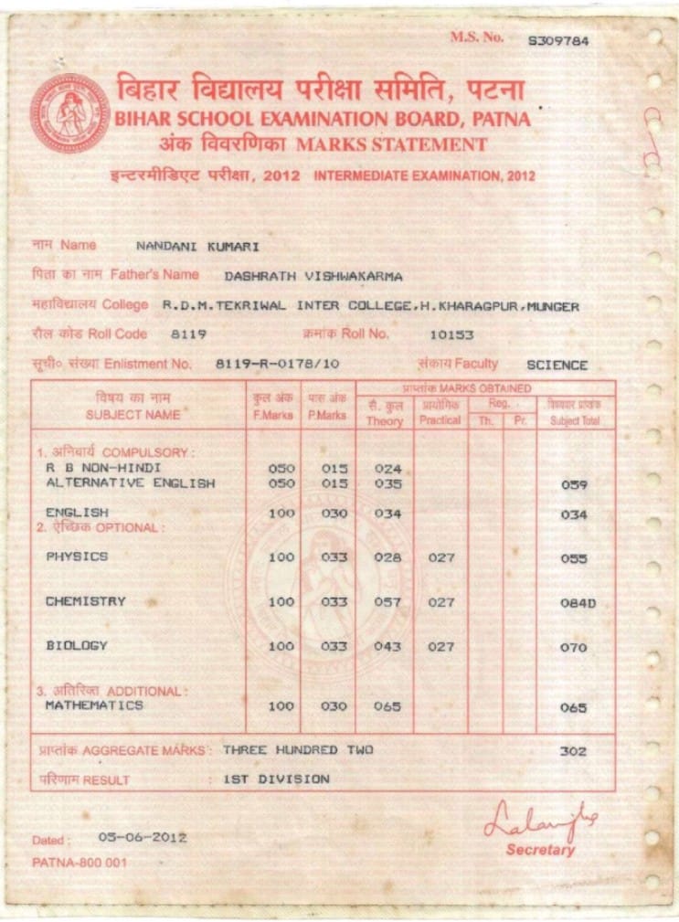| Exam | Full Marks | Pass Marks | Marks Obtained |