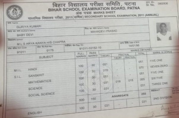 | Exam | Full Marks | Pass Marks | Marks Obtained |