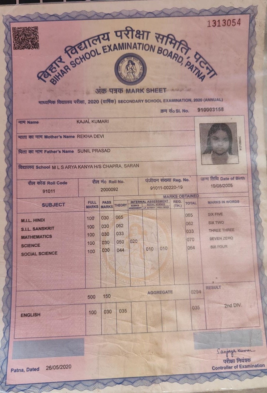| Exam | Full Marks | Pass Marks | Marks Obtained |