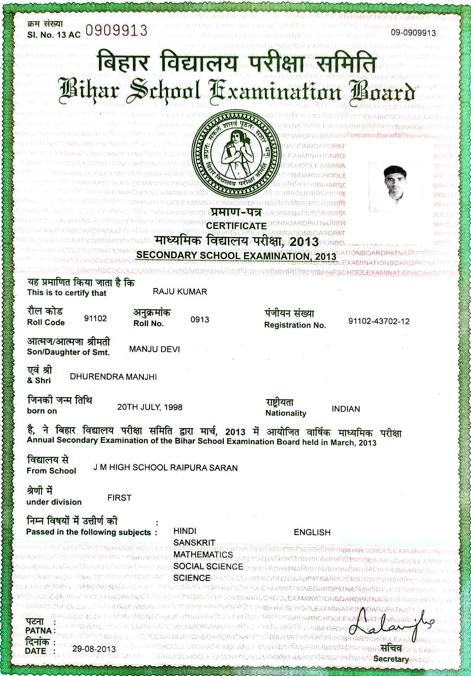 | : | Dhurendra Manjhi | |