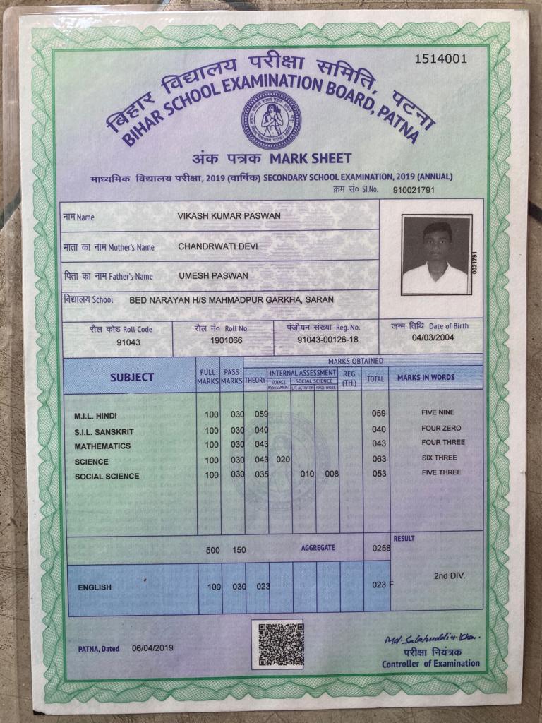 | Exam | Full Marks | Pass Marks | Marks Obtained |