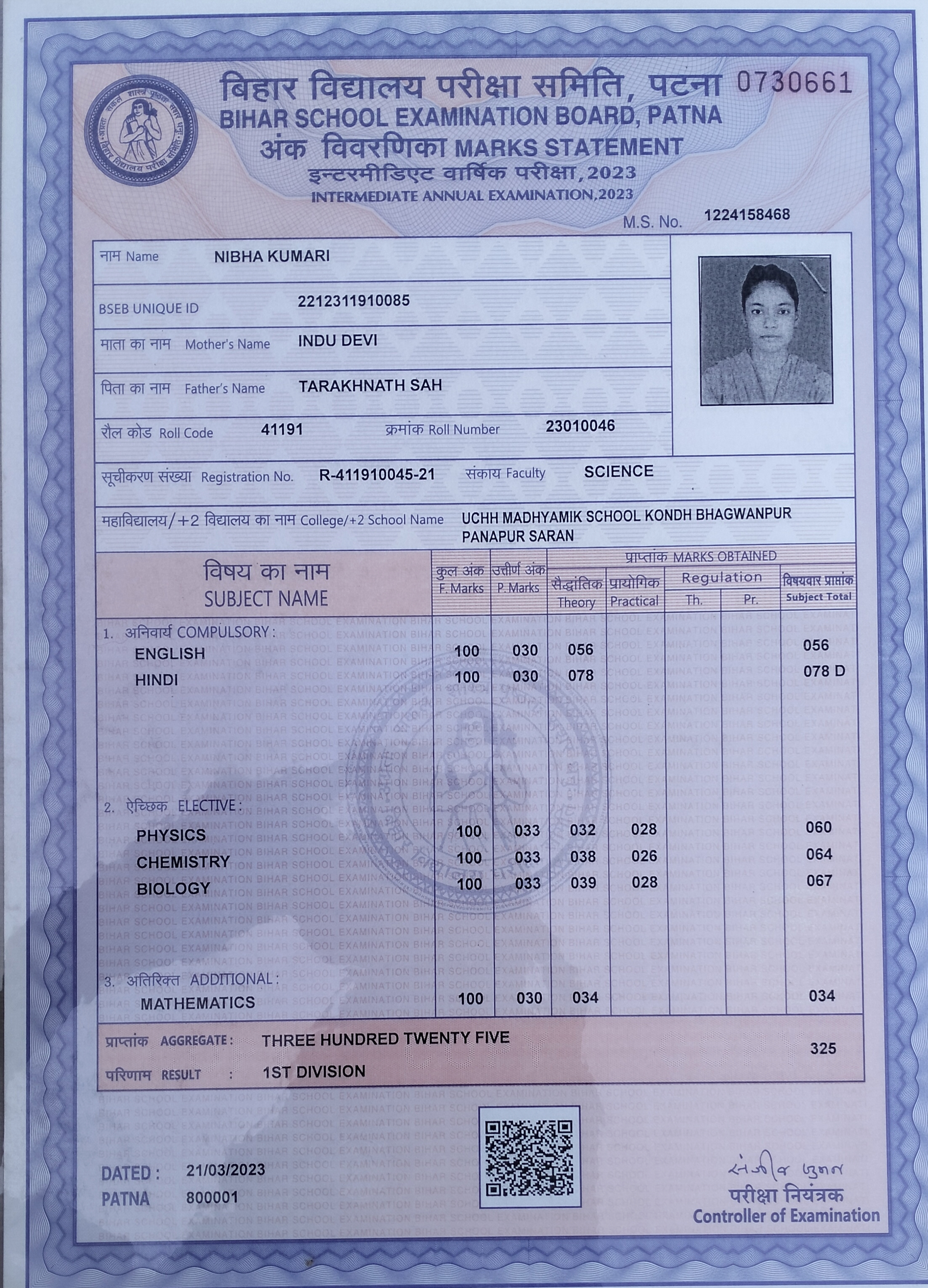 | Exam | Full Marks | Pass Marks | Marks Obtained |