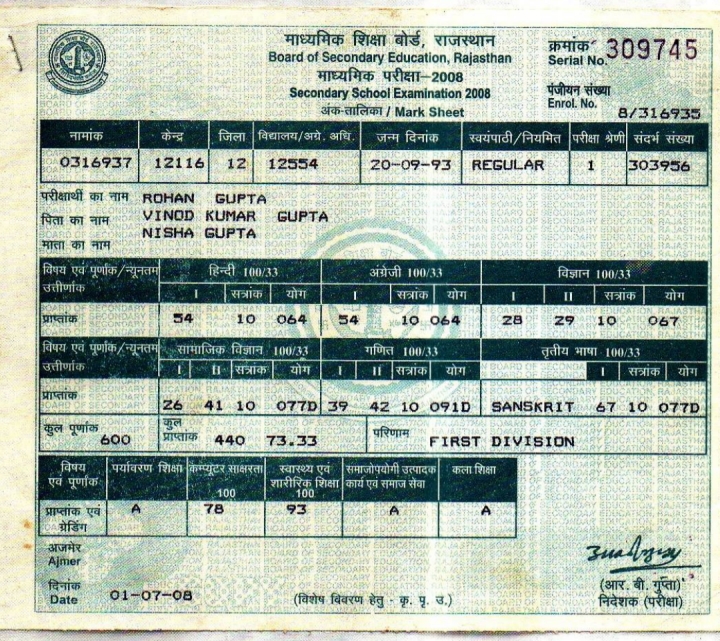 | Exam | Full Marks | Pass Marks | Marks Obtained |