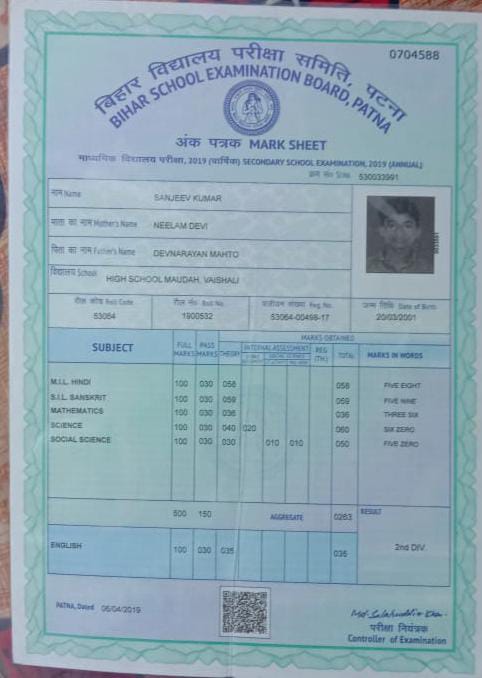 | Exam | Full Marks | Pass Marks | Marks Obtained |