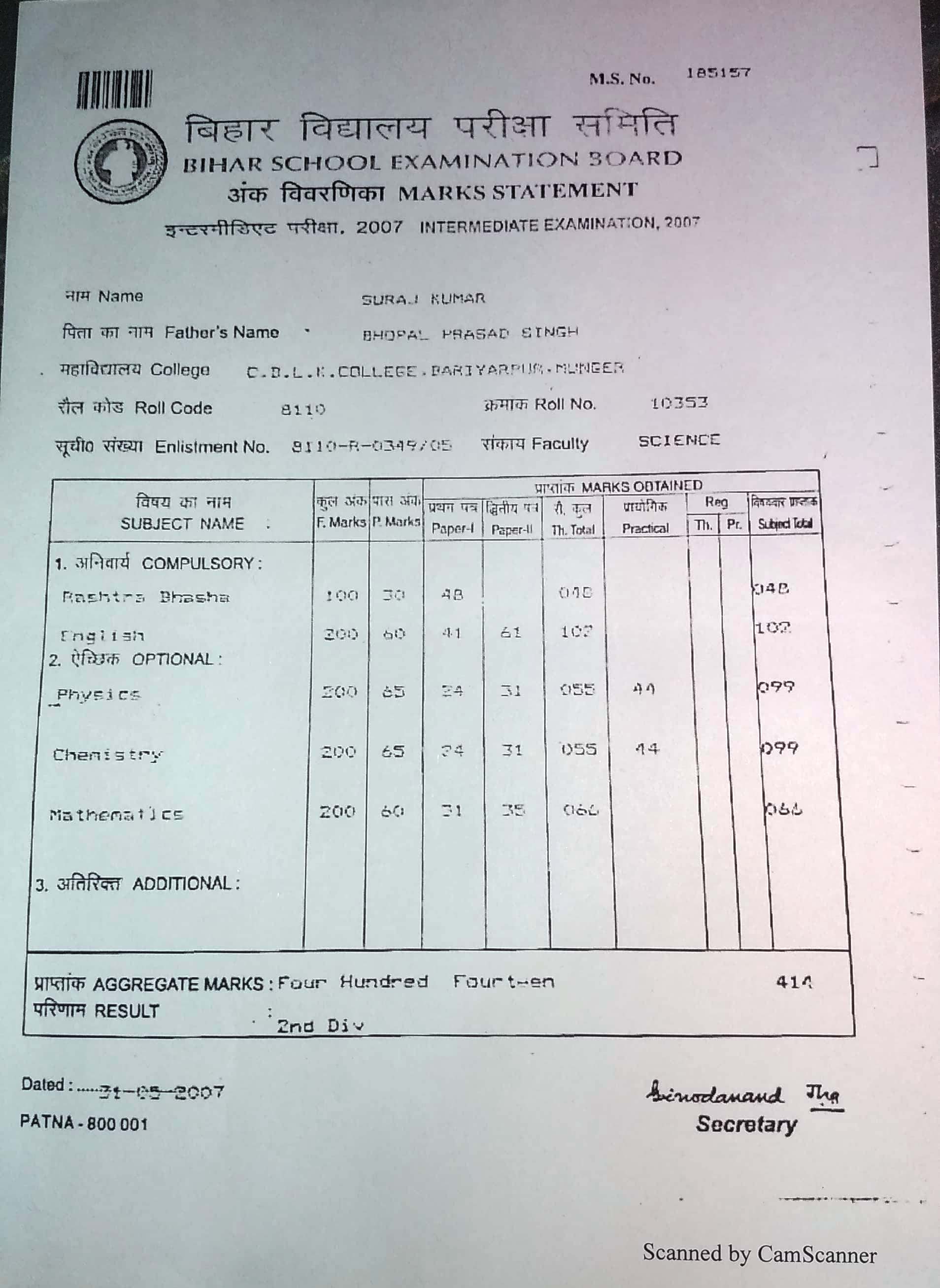 | Exam | Full Marks | Pass Marks | Marks Obtained |