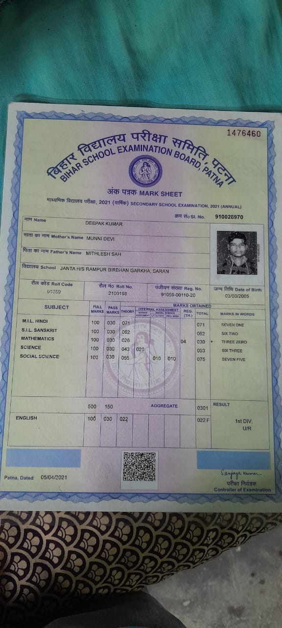 | Exam | Full Marks | Pass Marks | Marks Obtained |