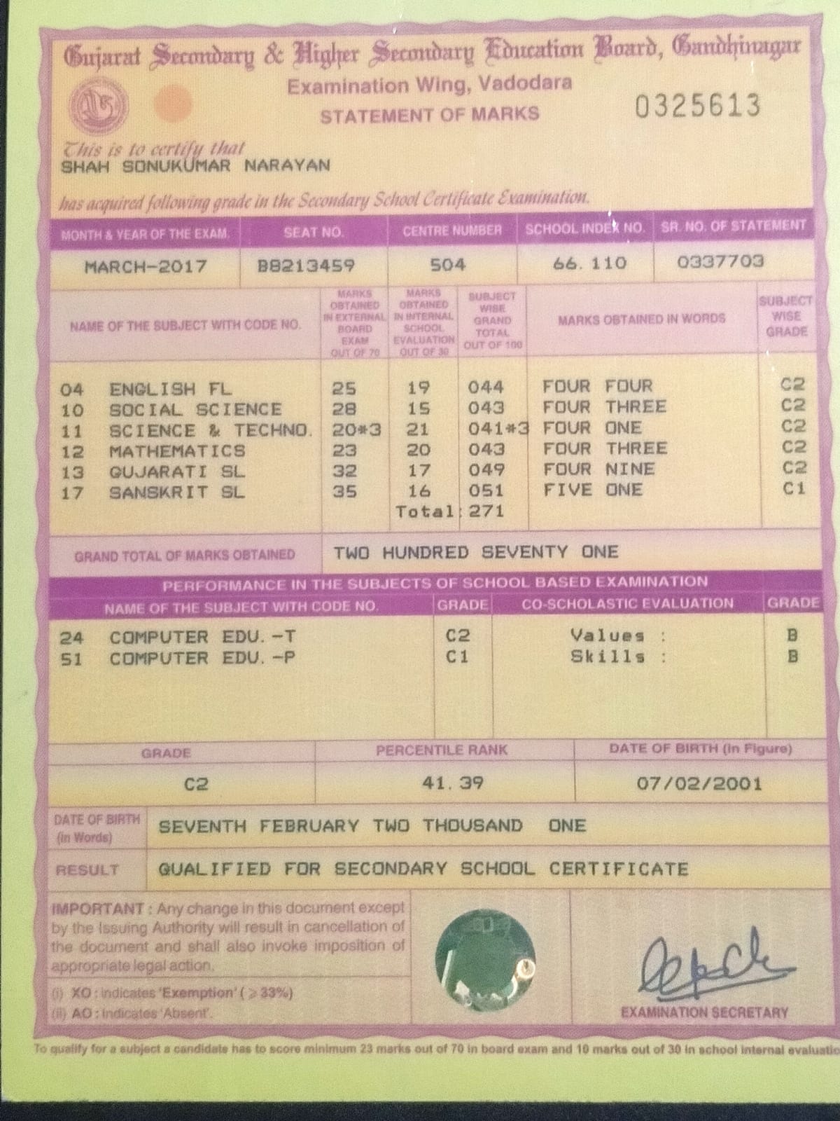 | Exam | Full Marks | Pass Marks | Marks Obtained |