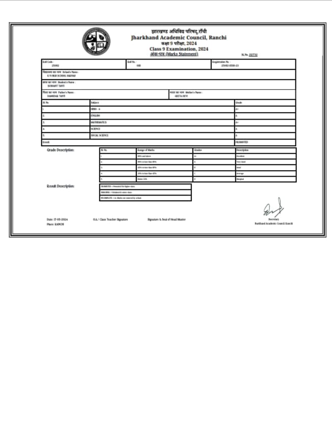 | Exam | Full Marks | Pass Marks | Marks Obtained |
