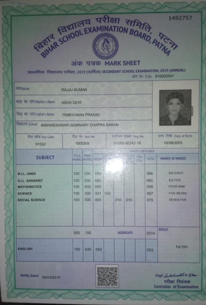 | Exam | Full Marks | Pass Marks | Marks Obtained |
