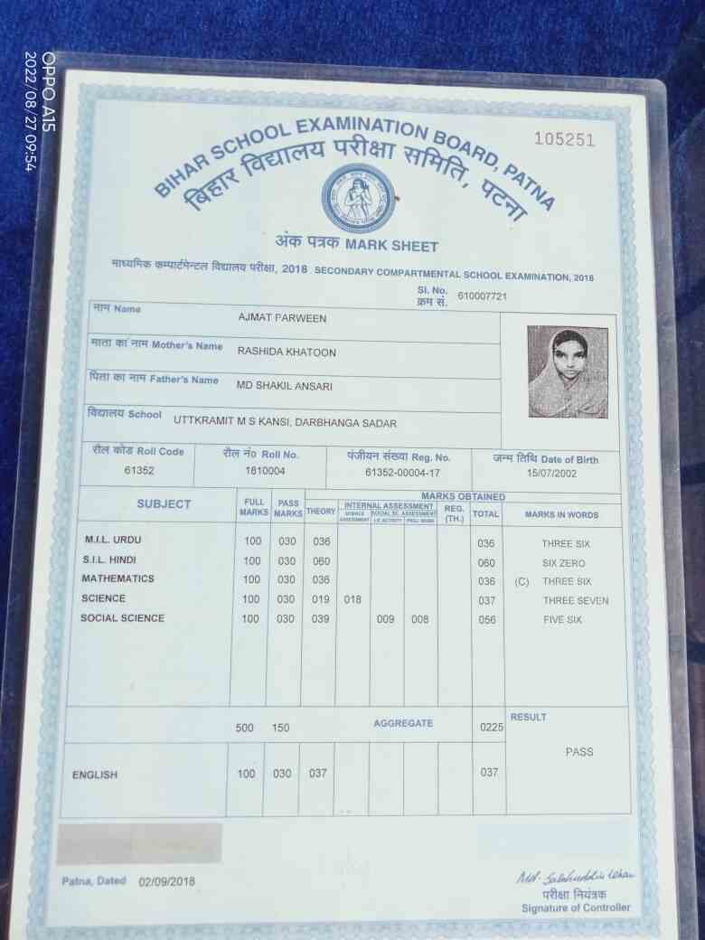 | Exam | Full Marks | Pass Marks | Marks Obtained |