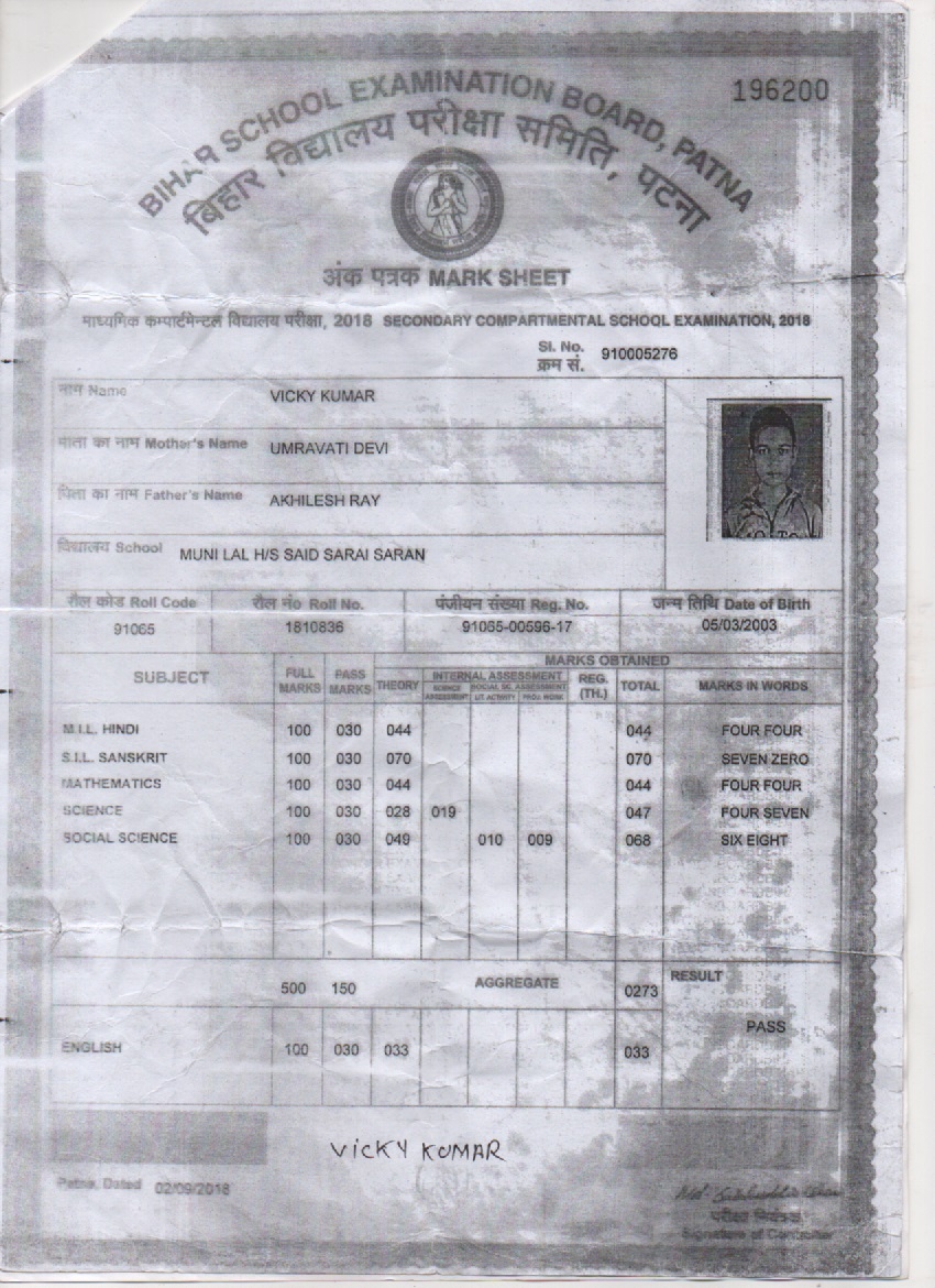 | Exam | Full Marks | Pass Marks | Marks Obtained |