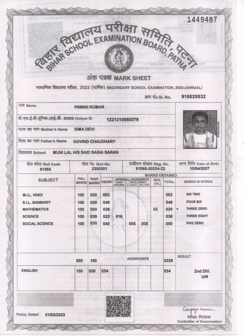 | Exam | Full Marks | Pass Marks | Marks Obtained |