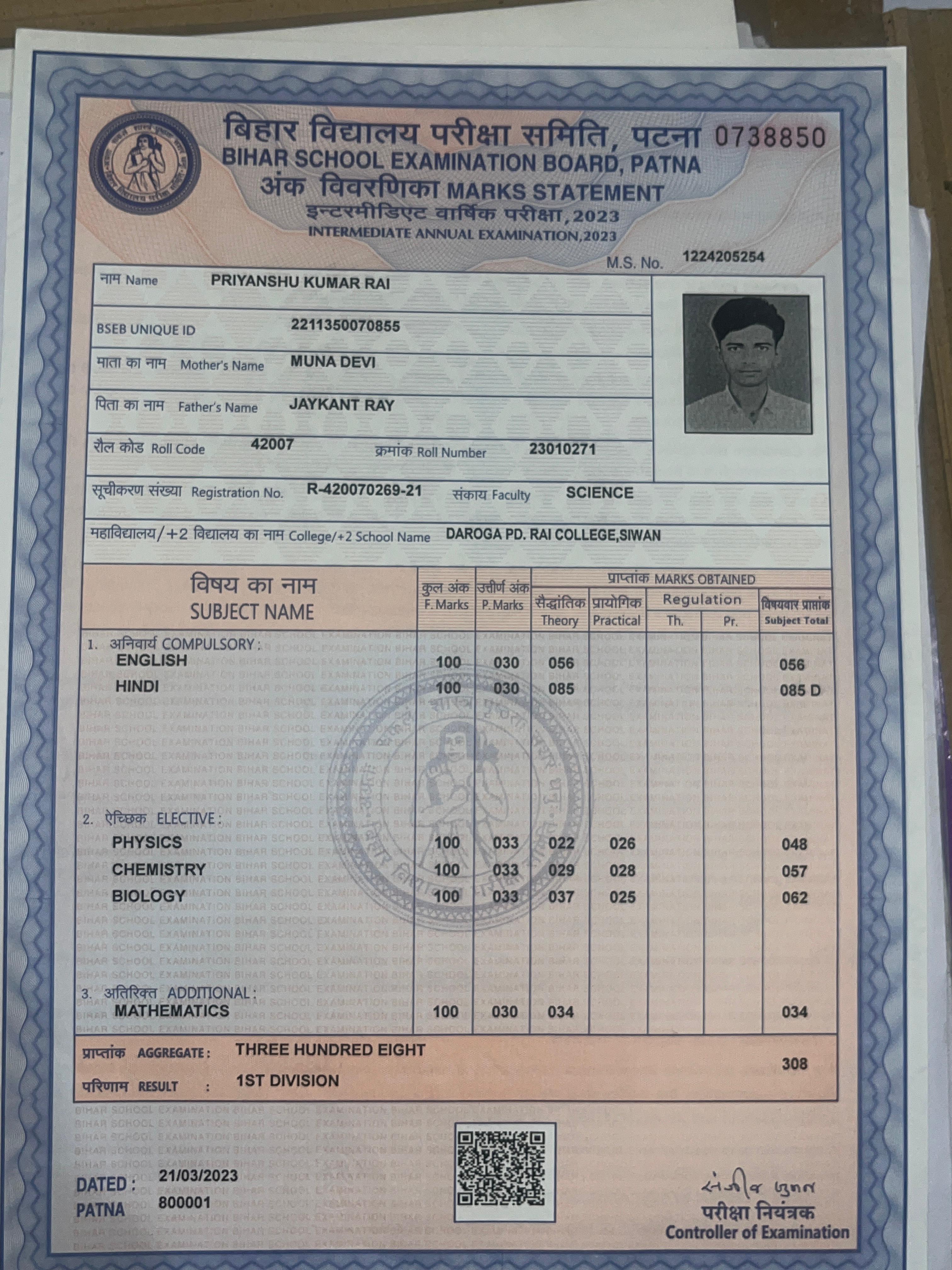 | Exam | Full Marks | Pass Marks | Marks Obtained |