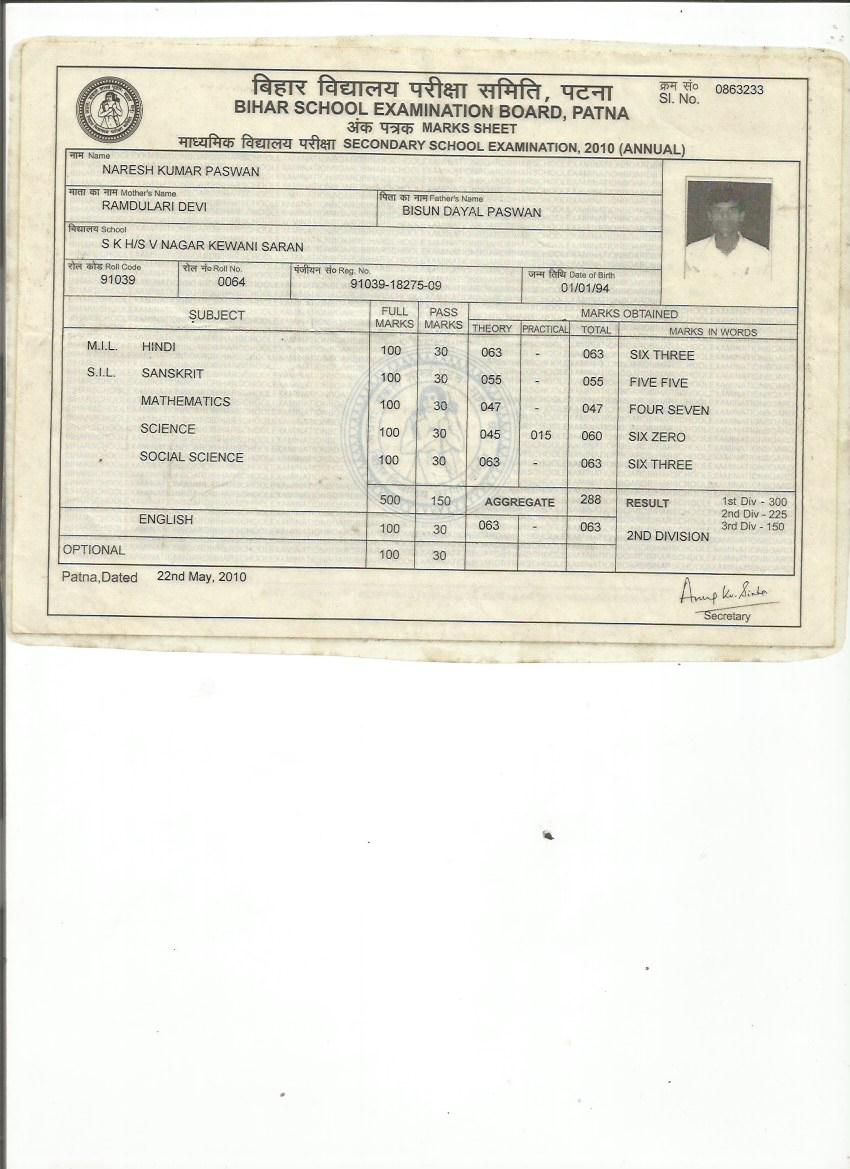 | Exam | Full Marks | Pass Marks | Marks Obtained |