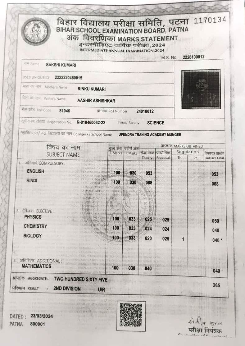 | Exam | Full Marks | Pass Marks | Marks Obtained |