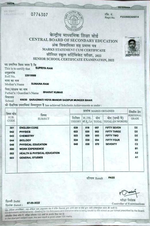 | Exam | Full Marks | Pass Marks | Marks Obtained |