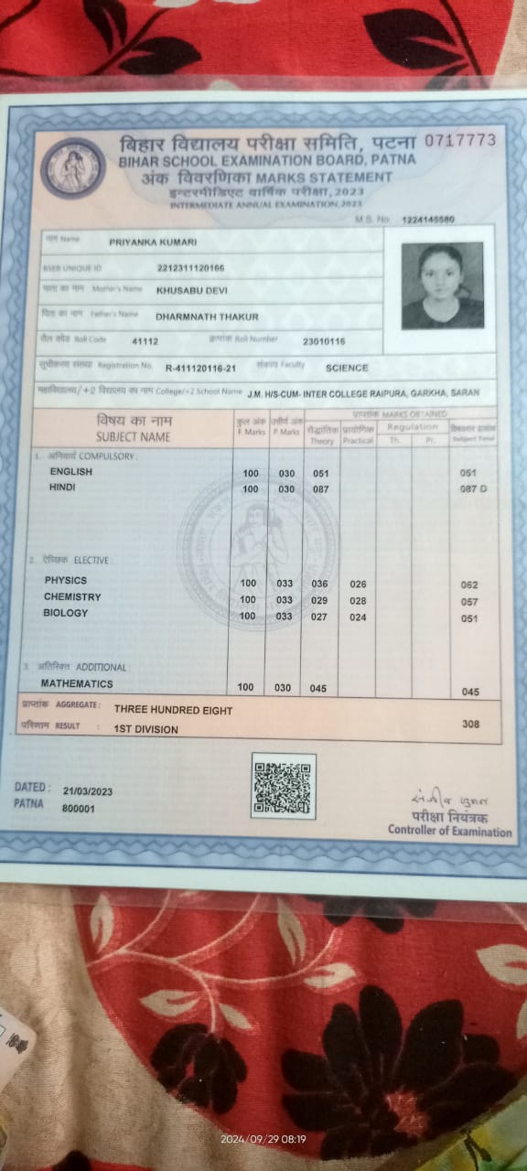 | Exam | Full Marks | Pass Marks | Marks Obtained |