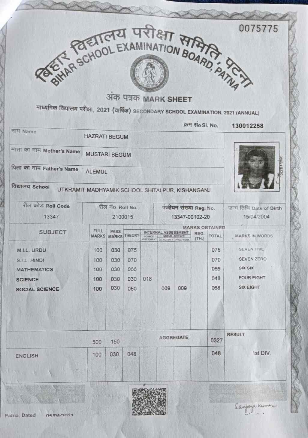 | Exam | Full Marks | Pass Marks | Marks Obtained |