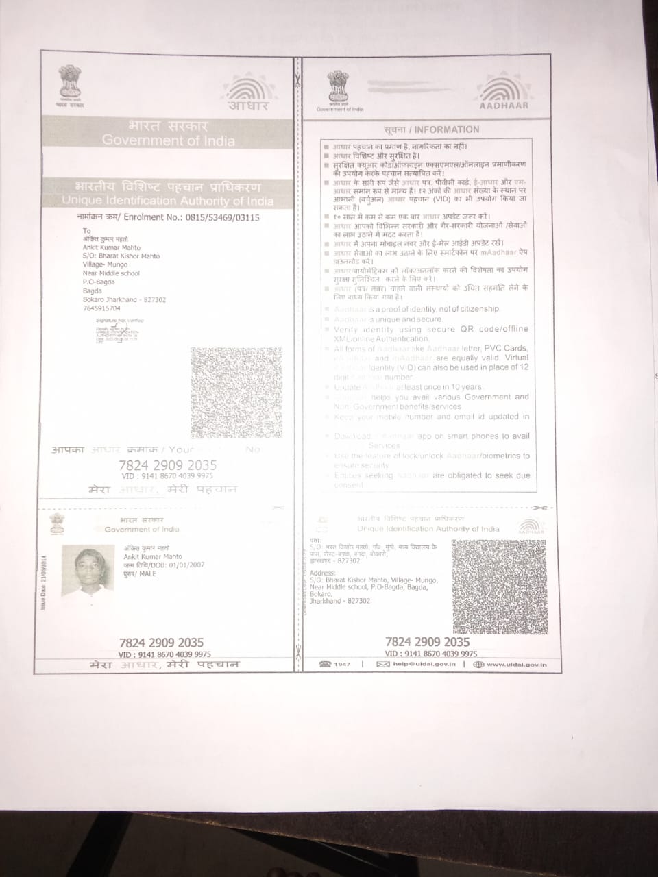| : | KHAIRACHATAR, NEAR- KHAIRACHATAR POST OFFICE, PS- KASMAR, BOKARO JHARKHAND - 827302, Bokaro | |