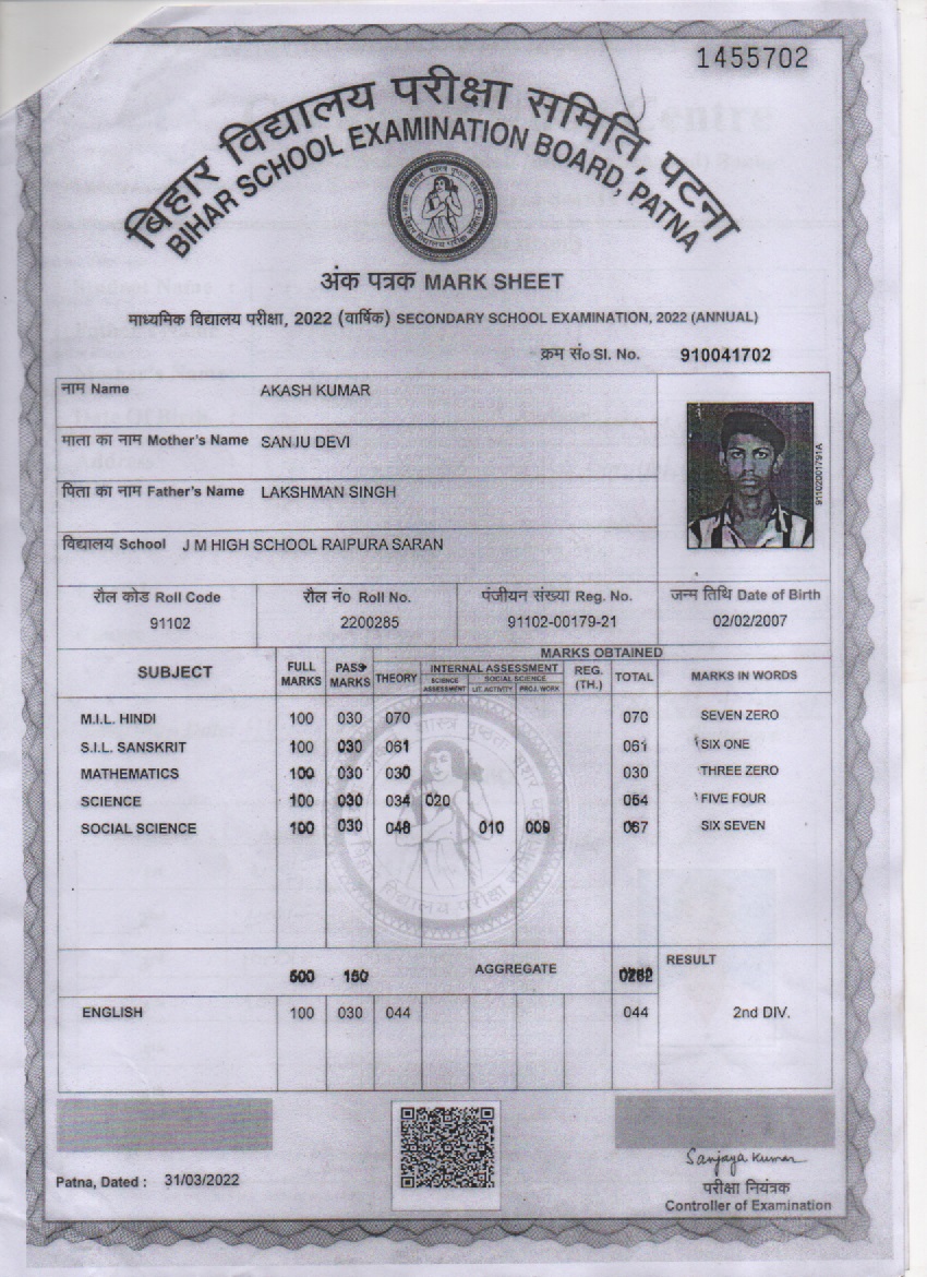 | Exam | Full Marks | Pass Marks | Marks Obtained |