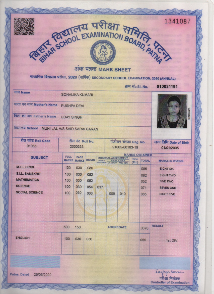 | Exam | Full Marks | Pass Marks | Marks Obtained |