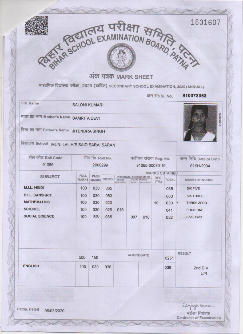 | Exam | Full Marks | Pass Marks | Marks Obtained |
