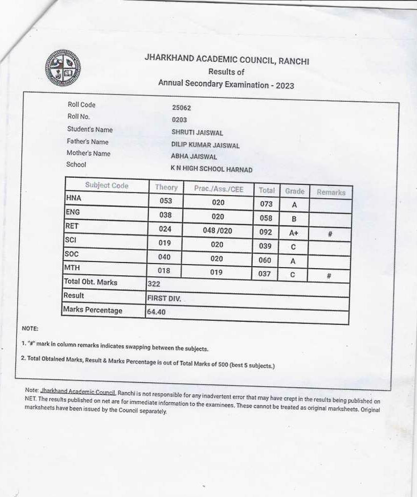 | Exam | Full Marks | Pass Marks | Marks Obtained |