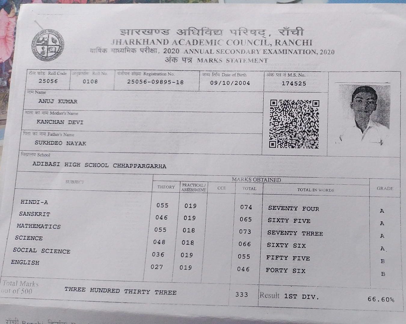 | Exam | Full Marks | Pass Marks | Marks Obtained |