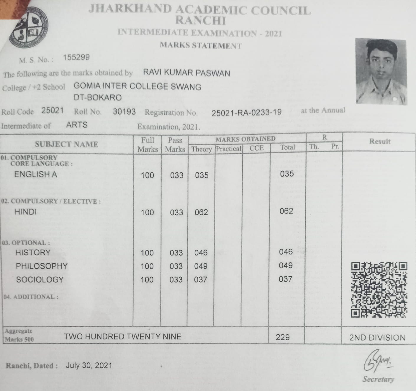 | Exam | Full Marks | Pass Marks | Marks Obtained |