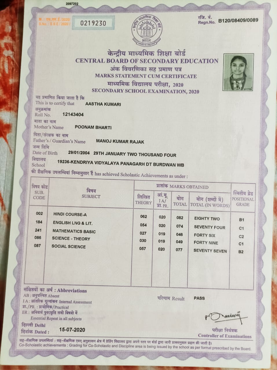 | Exam | Full Marks | Pass Marks | Marks Obtained |