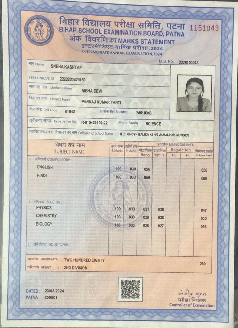 | Exam | Full Marks | Pass Marks | Marks Obtained |