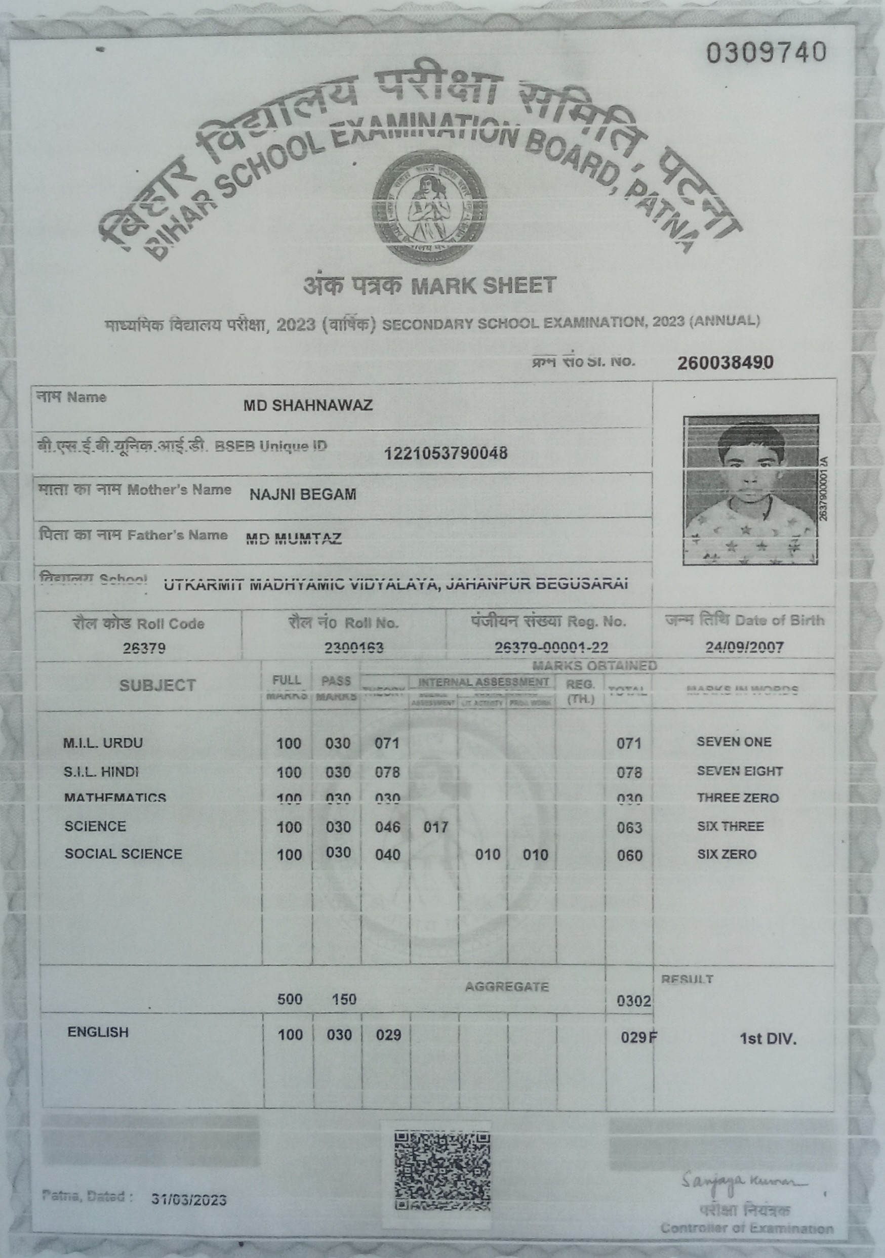 | Exam | Full Marks | Pass Marks | Marks Obtained |