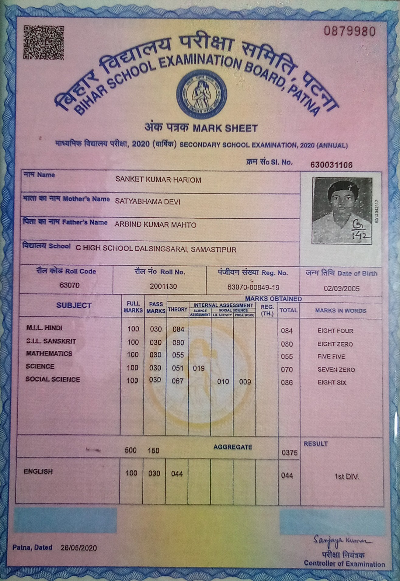 | Exam | Full Marks | Pass Marks | Marks Obtained |