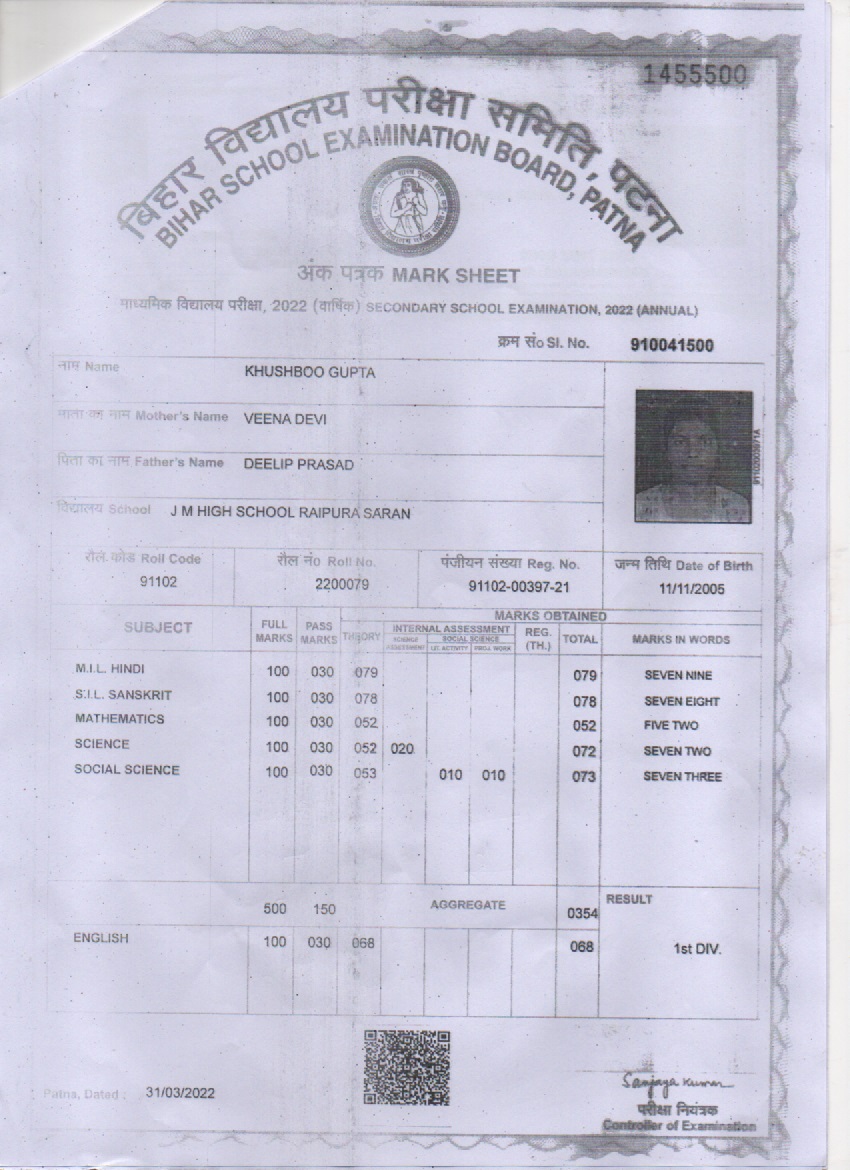 | Exam | Full Marks | Pass Marks | Marks Obtained |